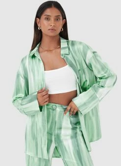 A vibrant version of a classic. The Norma shirt comes dyed to a green washed watercolour effect for a bold look. Crafted from a silky fabric, it’s ideal for lounging and looks best paired with the matching Norma trouser finishing with a black sandal.