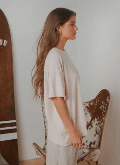 Slay in the Hemp Oversized Tee. Crafted from our beloved, buttery soft hemp and OCS certified organic cotton jersey construction that has been overdyed with a heavy stone wash to show the highs and lows of the fabric.