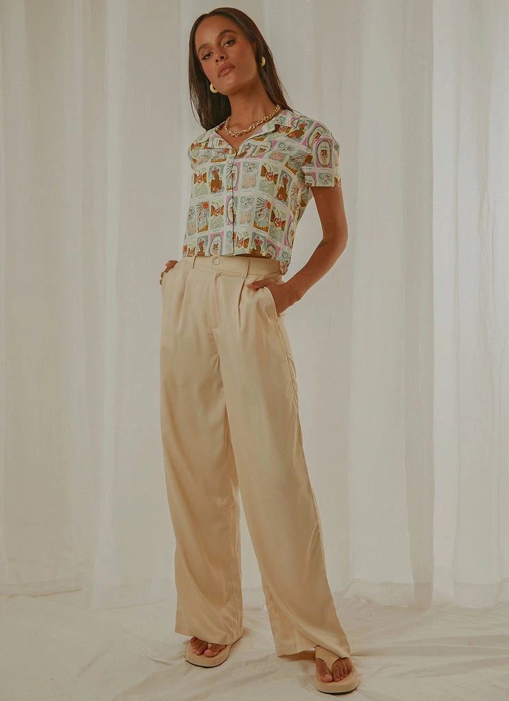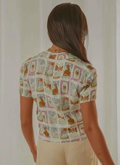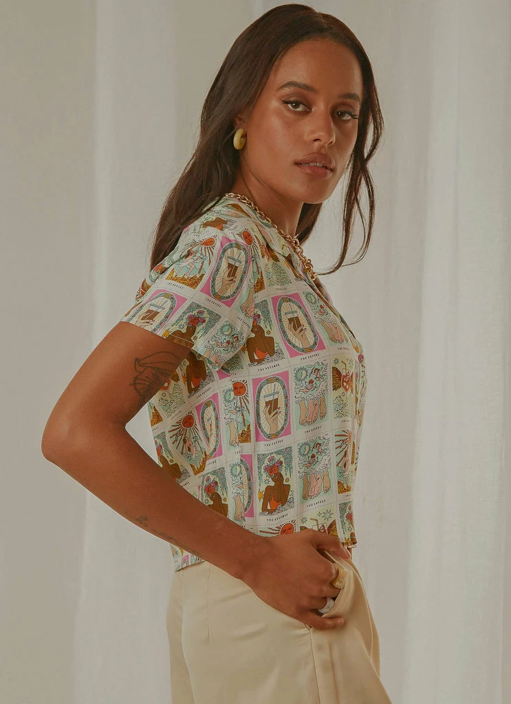 Welcome the Charlie Shirt in Tarot. Featuring our custom divine print with button front and dainty collar. Pair with the matching Slip Midi Skirt for the full look.
