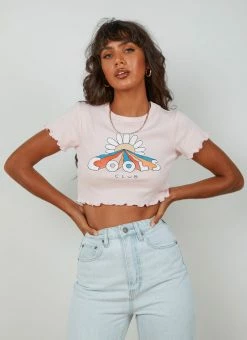 The new Flower Power in Pink features a crew neck silhouette built in a slim fit with lettuce-edge trim at the cropped hem with short sleeves. Finished with our rainbow chest print.
