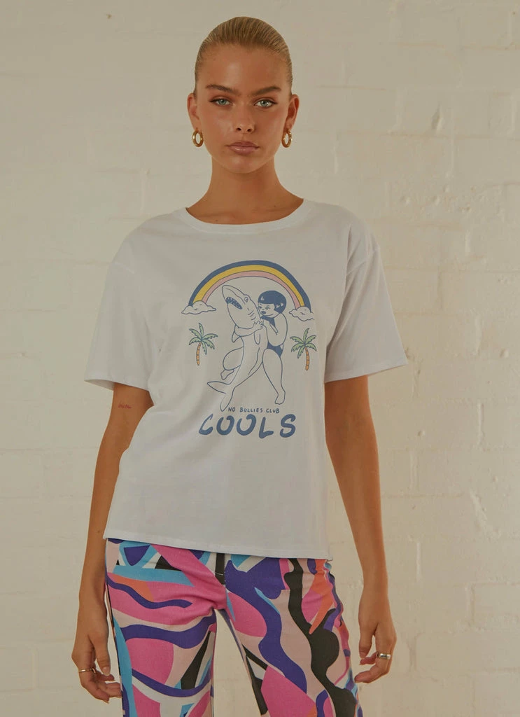 Re-use, Don’t Abuse! Made from 100% recycled cotton yarns. Yarn is re-combed and spun into beautiful natural and breathable cotton for you. The No Bullies Sunday Tee in White features a crew-neck fit and has been cut from soft cotton for a relaxed fit.