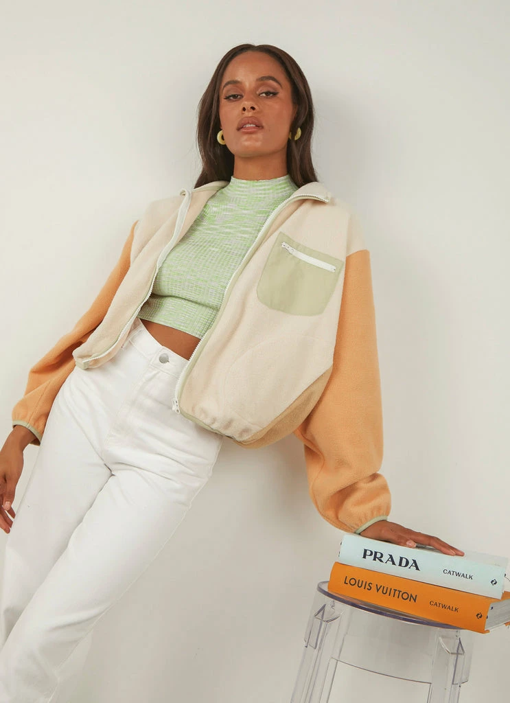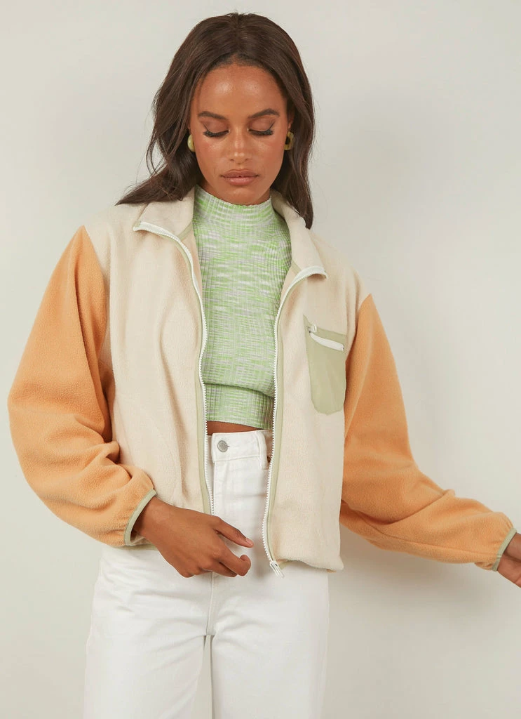 The best-selling Polar Fleece Jacket is back in Beige Leopard, perfect for slipping into after a morning yoga class or layered over jeans and a tee. Made from plush fleece with contrast pocket and trims.