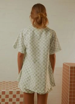 A wardrobe staple every cool girl needs. The Safari Shirt is cut from airy linen and cotton blend fabric in a soft sage checker print. Complete the co-ord look by pairing it with the California Pant or Jean Short.