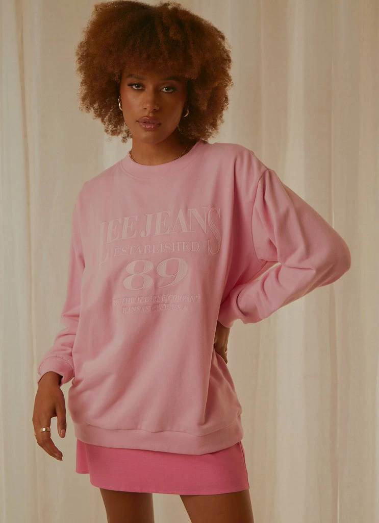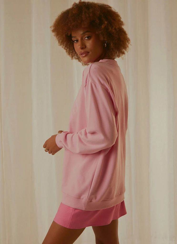 Designed to be oversized and slouchy, our Prism Pink sweater features a crew neckline, ribbed cuffs & hem, drop shoulders and large tonal embroidery reminiscent of 90’s inspired sports aesthetic. Crafted in 100% BCI cotton and super soft loopback fleece, this style will take you from the gym to casual weekend wear.
