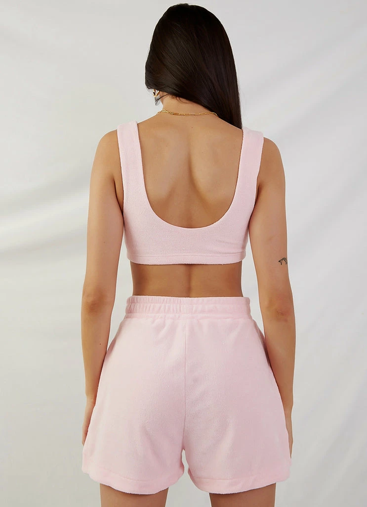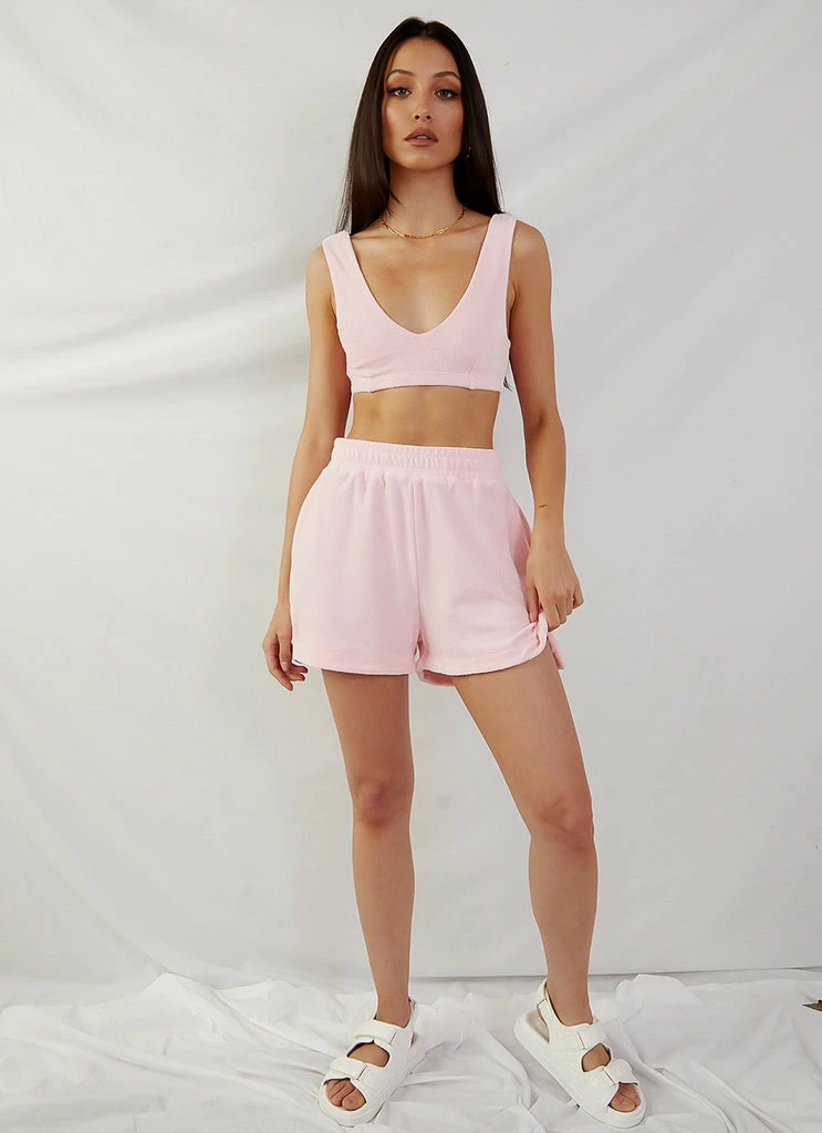 This cute crop screams summer vacay, and we are here for it! We love the Cote D’Azur Terry Crop with the matching St Tropez Terry Shorts, summer slides and the Holiday Terry Bucket hat for a fresh fun look.