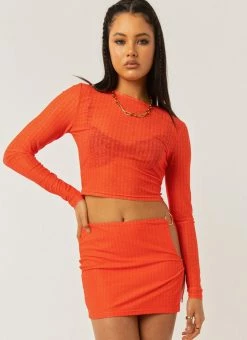 You’re bound to have a good time in the Good Luck Charm Mesh Top. A retro inspired long sleep crop top crafted in sheer mesh and features our exclusive Peppermayo print. The perfect co-ord look style back with the Lucky Break Mesh Skirt and boots.