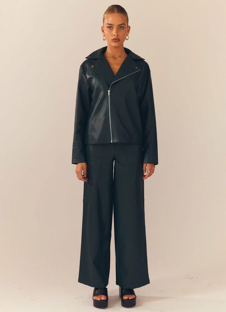 A wardrobe staple every It girl needs! This cool girl vegan leather jacket is sure to make heads turn. Pair with the matching pants and you’ve got the ultimate outfit.
