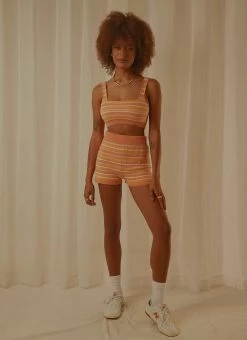 A wardrobe staple every cool gal needs! the Love Train Knit Crop pairs back with the Rhodes Knit Short for the perfect off-duty vibe.