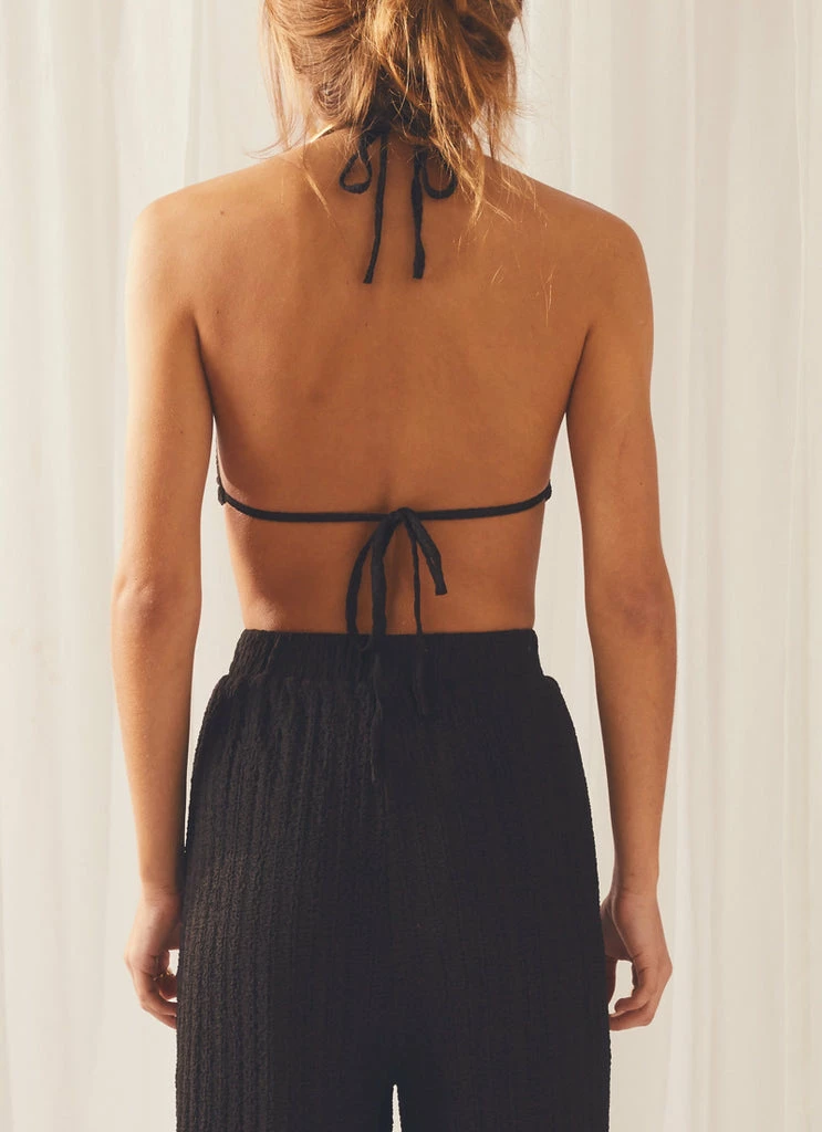 The limit does not exist! The Love Without Limits Top is a super cute halterneck crop top crafted in a textured fabric and featuring a gold o-ring detailing between the bust. Perfectly paired with the Give Me A Feeling Pants for cocktail o’clock!
