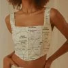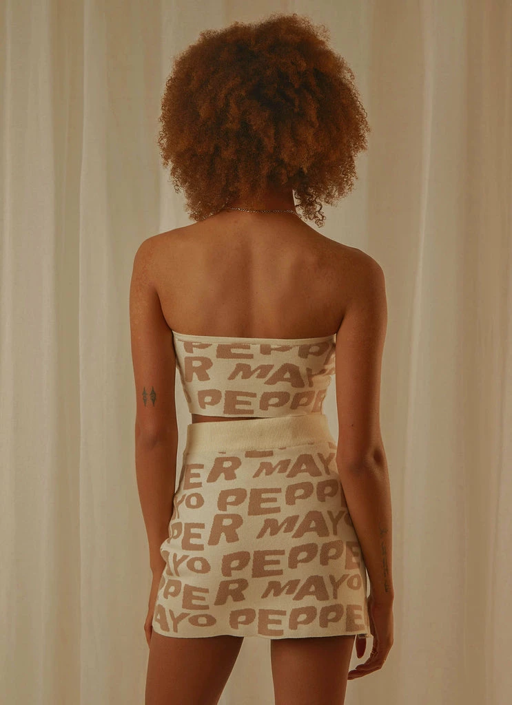 Hello Hottie! The Our Village Knit Crop is a strapless bustier cut with tie detailing at the bust and Peppermayo print. Complete the look with the Easy Love Knit Mini Skirt or pair it back with a high rise denim and platform mules.