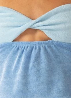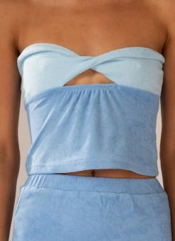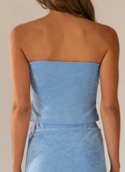 Elevate your summer aesthetic with the Salty Seas Terry Top. A cute lil’ crop top crafted in contrasting blue hues of lush terry towelling. A strapless style featuring twist detailing across the bust with a small cut out.