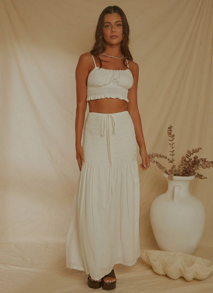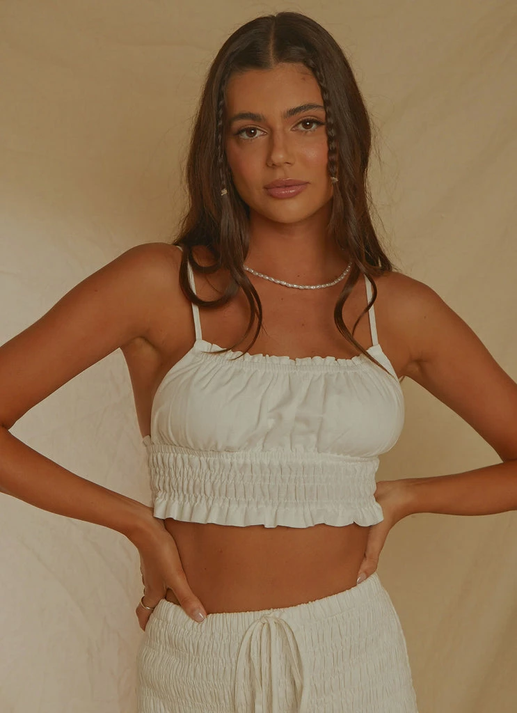 The perfect little crop doesn’t exi….Say hello to our Spring Melodies Top! A crisp linen with shirred detailing along the neckline and through the body. This cute lil crop is the answer to all your summer wardrobe prayers. We love it paired with the European Edition Mini Skirt or Lost Palms Maxi Skirt to fulfil all of your day to night needs.