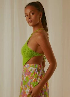 The Summer Crush Crochet Halter Top is perfect for any occasion, slip into this add simple hoop earrings, vintage inspired slouch denim jeans, and your fave heels!