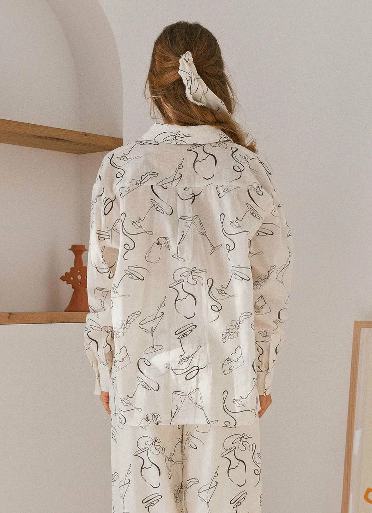 Dreaming of Italian sunsets in the Ciao Linen Long Sleeve Shirt. A relaxed fit button down shirt crafted in a light, crisp linen blend and features our exclusive Peppermayo x Rikki Day print.