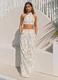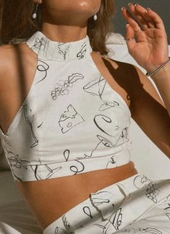 Date night ready with the Fresco Linen Halter Top. Crafted in crisp, light linen and featuring our exclusive Peppermayo x Rikki Day print with thick strap halterneck and open back detailing the crop top is sure to become your summer favourite. Simply styled with the Sicilian Linen Pants, strappy mules and chunky gold jewellery.