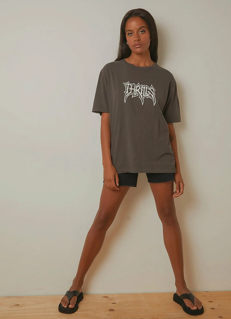 An edgy and oversized tee, you don’t need no boyfriend to steal it from. Perfect with vintage denim or a fun print, this super soft cotton tee will be a very happy addition to your wardrobe.